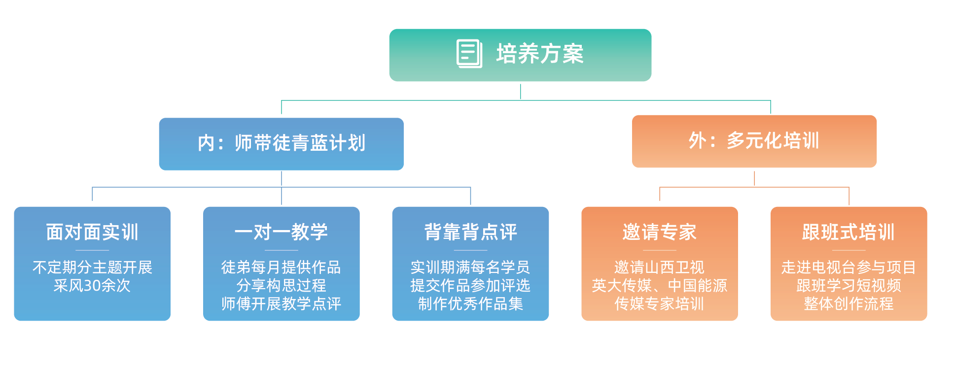 融媒體中心持續(xù)開(kāi)展“師帶徒·青藍(lán)計(jì)劃”新聞實(shí)訓(xùn)活動(dòng),在“電約拍”1.0組建攝影團(tuán)隊(duì)基礎(chǔ)上,新組建2支視頻拍攝團(tuán)隊(duì),3支隊(duì)伍共培養(yǎng)骨干通訊員17名。制定實(shí)訓(xùn)方案,通過(guò)“采風(fēng)+創(chuàng)作+點(diǎn)評(píng)”“線上培訓(xùn)+線下指導(dǎo)”相結(jié)合等方式,將宣傳理論與實(shí)踐經(jīng)驗(yàn)輻射到各個(gè)基層單位,提升一線人員專業(yè)素養(yǎng)。此外,邀請(qǐng)央視、新華社、山西電視臺(tái)、運(yùn)城電視臺(tái)、中國(guó)能源傳媒、英大傳媒等媒體專家培訓(xùn)指導(dǎo),不斷提升全媒體團(tuán)隊(duì)宣傳創(chuàng)作能力和水平。