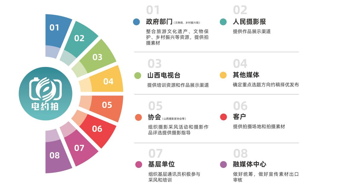 融媒體中心根植合作理念,將利益相關(guān)方拓展至政府部門(mén)(文物局、鄉(xiāng)村振興局等)、媒體(山西電視臺(tái)、人民攝影報(bào)等)、協(xié)會(huì)(山西省攝影家協(xié)會(huì)及市縣協(xié)會(huì)等)、基層單位、客戶(企業(yè)、人民群眾等),精準(zhǔn)識(shí)別分析各利益相關(guān)方的核心訴求與資源優(yōu)勢(shì),搭建多方溝通平臺(tái),確保溝通協(xié)作順暢,推動(dòng)形成優(yōu)勢(shì)互補(bǔ)、資源共享的合作格局。
