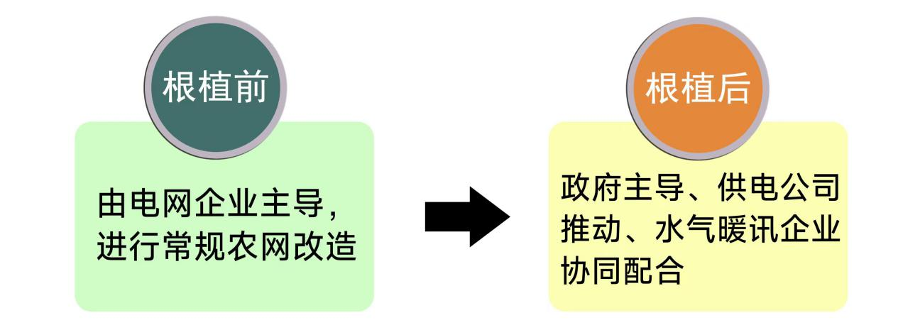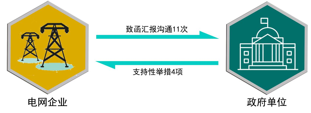 轉(zhuǎn)變以往單打獨斗的固有工作方式,識別農(nóng)村配電規(guī)劃建設(shè)有關(guān)的利益相關(guān)方,分析其訴求、資源優(yōu)勢,充分考慮其合理建議、期望和訴求,找到各方利益相關(guān)方的聯(lián)結(jié)點,形成“政府主導(dǎo)、供電公司推動、水氣暖訊企業(yè)協(xié)同配合、客戶受益、多方共贏”的推進(jìn)模式。